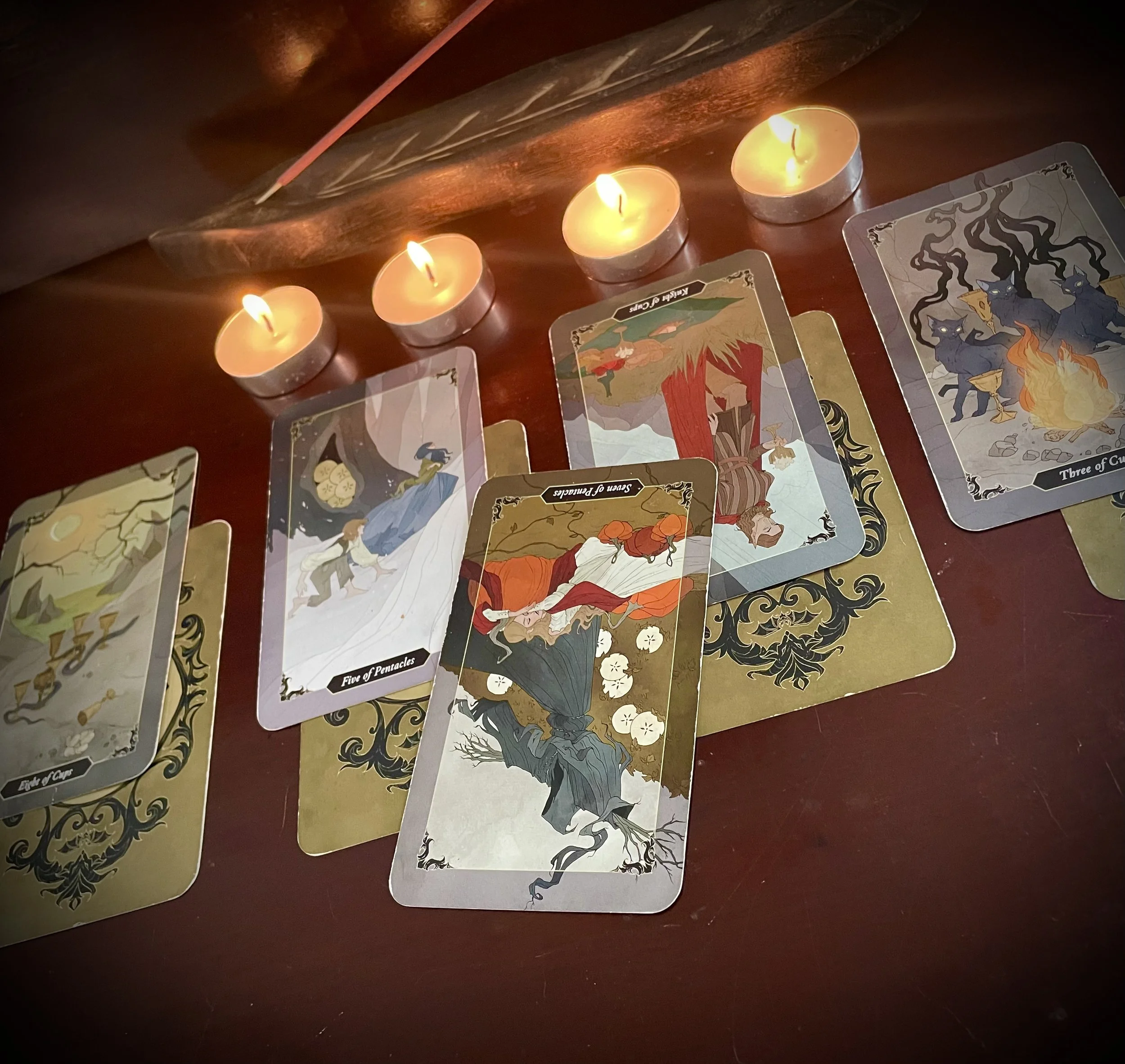 The troll under the bridge demands a fee. Bridges transform us, and connect us into new realities. If the river is the deep and rushing darkness, traversing this threshold will demand an offering. So, it’s best to get ahead of the game and come prepared. Let’s figure out what we need to sacrifice. Dig deep into meditation with your spirit guides, with the intention of revealing any positive attributes you may have forgotten. Let your guides reinvigorate you and remind of all the reasons why you can traverse this change. The vampires mentioned above are represented with the troll pictured on this deck’s four. Pay the toll, get the blood to where it needs to go- but make it the last time. Burn the bridge after you cross it, and the troll can no longer demand payments they haven’t earned. It’s going to be okay, because you aren’t going turn back this time, you’re going to chase after what you love.